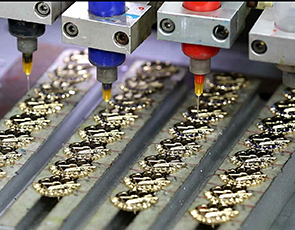 烤漆是在徽章制造中的一種噴漆制作方法(工藝)。其方法是:在打磨到一定粗糙程度的基底上滴上若干層亞克力油漆。并經(jīng)高溫烘烤定型。 該工藝目前對油漆要求較高,顯色性好??酒峄照碌闹谱鞑牧弦话銥殂~、鐵、鋅合金等,其中以鋅合金、鐵質(zhì)、青銅用的最多,其表面多具有明顯的凹凸感,質(zhì)感好,適合一些中高檔徽章的制作。制作流程:設(shè)計制圖——出黑(凸起)白(凹下)菲林——曬版——咬版——刻模——切模——沖壓——拋光——電鍍——焊配件——上色(烤漆)——加波麗——烘干——品檢——包裝——出貨。